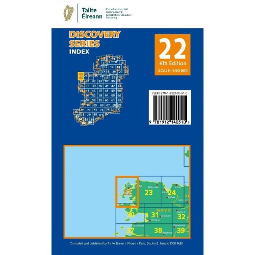 Each Discovery map sheet covers an area of 40km x 30km, and Sheet 22 provides excellent coverage for planning walking holidays, cycle tours, and exploring lesser-known gems of County Mayo. Whether you're navigating rural roads, coastal trails, or historic landmarks, this map delivers accuracy and clarity.